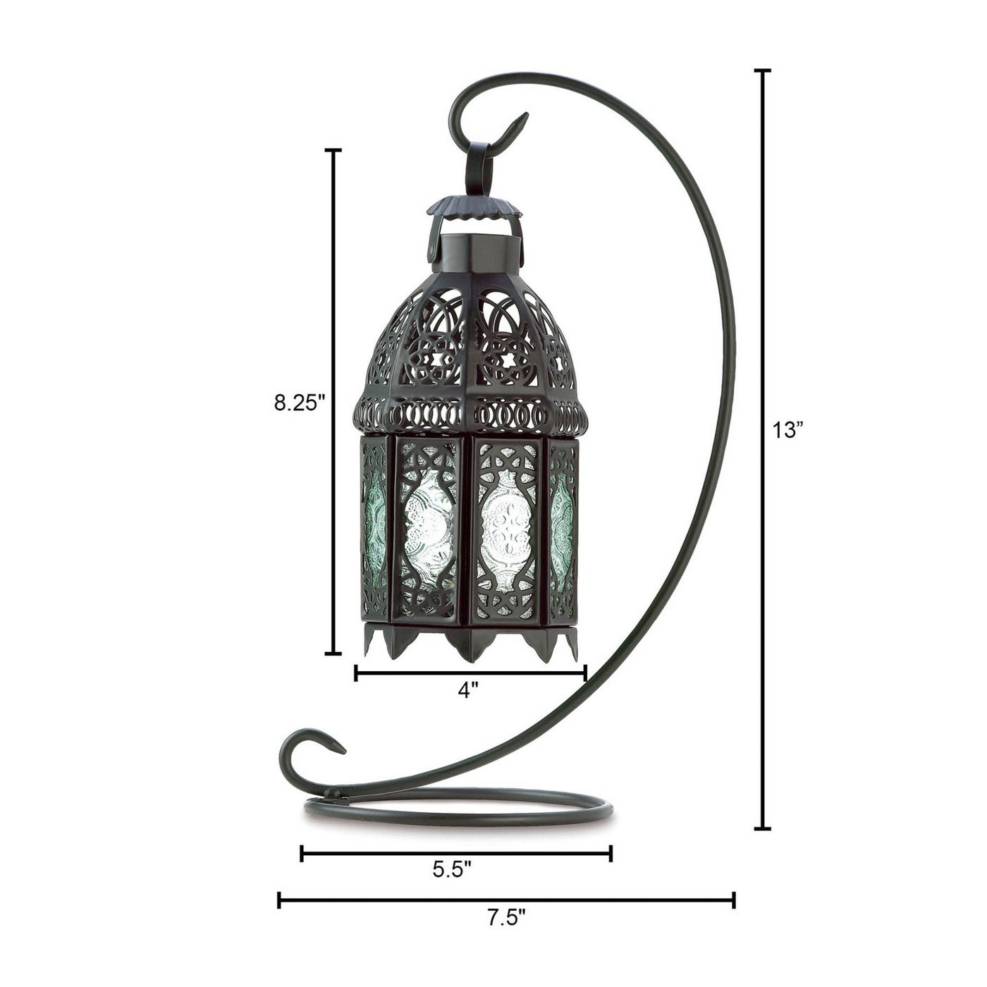 The lattice lantern cage with intricate metal cutouts and Moroccan styled stand create a gorgeous effect of flickering light that can either set the tone for outdoor events or cast an exquisite glow within your home. Hinged glass panels make it easy to place the candle or LED light of your choice and is ideal for festive parties, weddings, outdoor lighting or as gifts. Alternate Lanterns are available is a variety of colors and styles so feel free to mix and match to find the Moroccan Style Lantern that best fits your home.