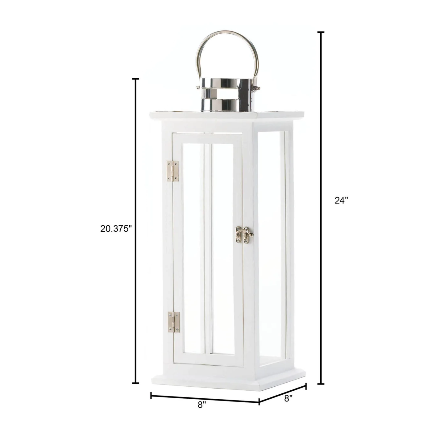 • The lantern weighs 5 lbs. and measures 8 inches by 8 inches by 20.37 inches.