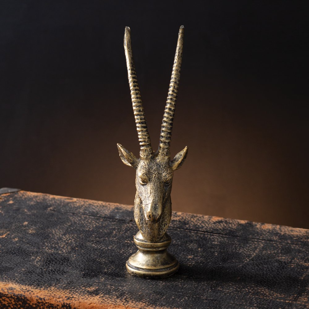 Graceful in the wild and on your table, the gazelle is a luxurious touch to a room. Our gazelle figurine features an elegant, antique gold finish and can be placed among books and trinkets on a tabletop. Item is fashioned of resin.